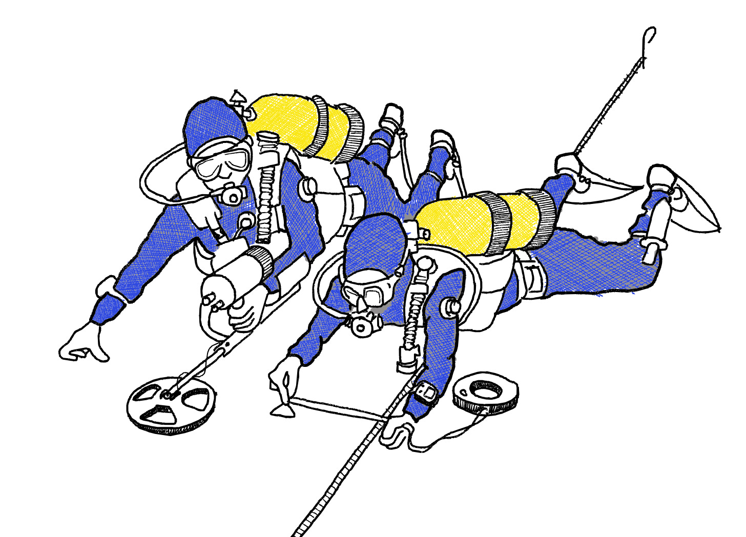 За корица на настоящия бонус епизод показвам екип от двама водолази, които проучват морското дъно. Единият държи уред, подобен на металотърсач, а колегата му измерва с ролетка координатите на локацията. Тази сцена не съм я измисли сам. Ще Ви призная, че я прерисувах от книгата Underwater Archaeology на Nautical Archaeology Society. И понеже никога не се знае какво морско чудовище дебне наоколо, обърнете внимание, единият водолаз е въоръжен с нож на крака!